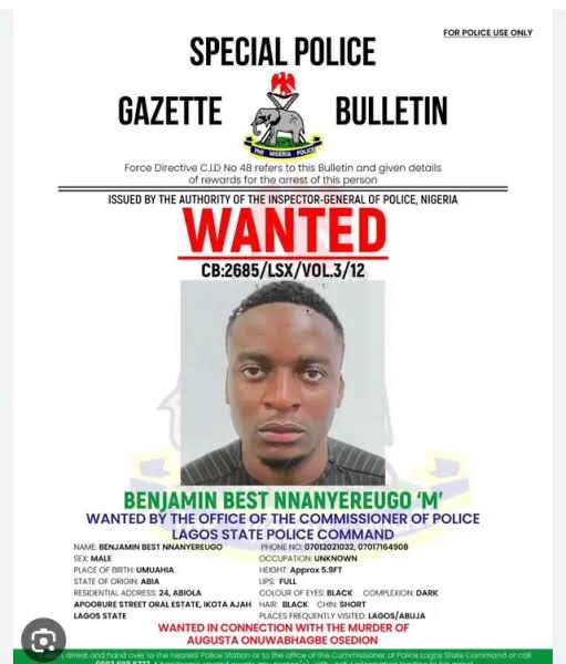 Investigations revealed that the suspect, Benjamin Best Nnayereugo, murdered Miss Onuwabhagbe, a 21-year-old first-class student of Lead City University, Ibadan, at his residence located at No. 24A Abiola Apooyi Street, Oral Estate, Ajah, Lagos, on 13th July 2023. After committing the crime, he fled Nigeria and later released an online video purporting to confess to the act, a deceptive strategy to derail investigative efforts.