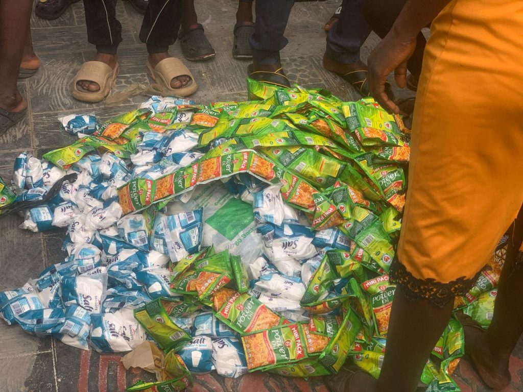 The food items includes Rice, Beans, Garri, among other items.