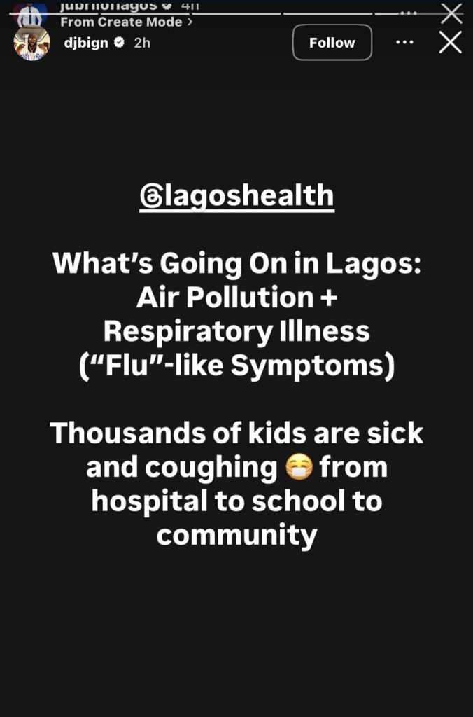 DJ Big N Raises Concern Over Rising Air Pollution, Spike in “Flu-Like” Illnesses in Lagos